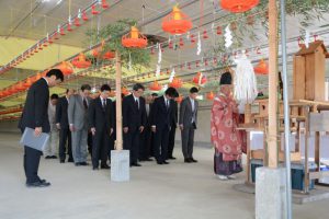 5月20日、いちいファームの竣工式が執り行われました。鶏舎の規模は1棟が300坪で、全8棟あり合計2,400坪。